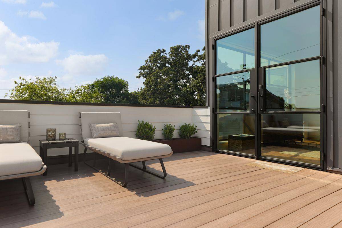 Experience Austin in this classy, modern East-side haven that captivates with its vibrant indoor-outdoor living spaces. The expansive open floor plan, characterized by clean lines and high ceilings, seamlessly connects to beautifully landscaped outdoor areas. Ascend to the remarkable 1,300 Square Feet rooftop living area, where you'll enjoy breathtaking views of Austin's skyline. With a built-in outdoor wet bar, island, private half bath, and fire feature this space is perfect for upscale entertaining under the stars. Inside, bathed in natural light, the gourmet kitchen shines with polished quartz surfaces and state-of-the-art chef-grade appliances, complemented by a walk-in pantry. This inviting space flows effortlessly into the living areas, perfect for both relaxation and entertaining. The spacious primary bedroom on the second floor offers an ensuite and walk-in closet, opening to a private deck with stunning Downtown views. Additional bedrooms provide ample space for guests or family, each thoughtfully designed for comfort and style. High-tech amenities enhance the experience throughout the home, including Lutron lighting, Somfy electric shades in every room, and a front entry video intercom. The property also features a 2-car garage with a Tesla wall charger, California closet systems, solar panels, a gas fireplace, Farrow & Ball wallpapers, and Ann Sachs tiles in each bathroom. Just minutes from Downtown and a short walk to Austin's coolest bars and restaurants, such as Suarte, Canje, and Whistlers, this contemporary gem offers luxury living in an unparalleled location, where vibrant city life meets serene outdoor spaces.